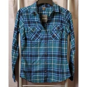 Eddie Bauer Green Blue Plaid 100% Cotton Long Sleeve Forest Flannel Womens XS