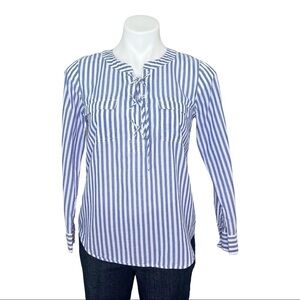 Talbots Pullover Blouse Blue Stripe Long Sleeve 100% Cotton Sp