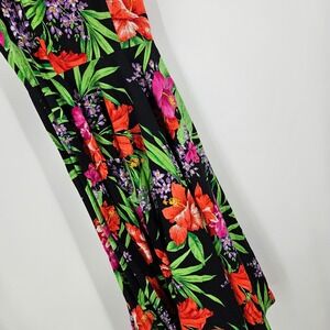 Vintage 70s 80s Housewife Dress Red Black Green Floral A-Line Retro Maxi Size XS