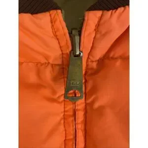This Vintage Mens Reversible Hunting Puffer Vest in neon orange, made by Kmart, is a stylish and practical piece perfect for outdoor activities like hunting. The vest features a solid pattern with a zip closure, reversible design, and soft nylon outer shell and lining, providing warmth with its duck down insulation. With a retro 80s outdoor theme, this vest is ideal for travel, casual wear, and workwear, making it a versatile addition to any wardrobe for those who appreciate both style and functionality.