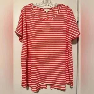 NWT Umgee Striped Tee Top Shirt Blouse Loose Fit split back size L