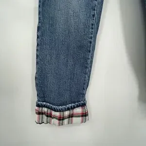 Pistola Blue Flannel Plaid Cuff Cropped Mid Rise Wash Jeans Size 27