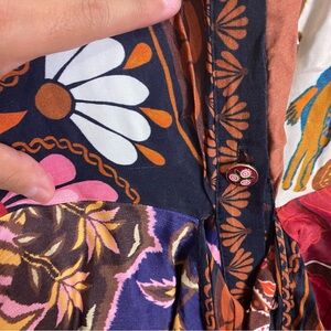 FARM Rio Miranda Long Sleeve Floral Faux Wrap Midi Dress Button Front M Chemise