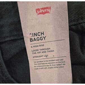 Add a stylish touch to your wardrobe with these Levi's Women's Cinch Waist Baggy Jeans. These jeans are new with tags and come in a classic black color. The cinch waist design offers a flattering fit, while the baggy style provides all-day comfort.