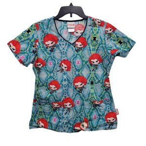 Marvel Women's Avenger's Black Widow Cute Kawaii 3-Pockt Scrub Top Size S