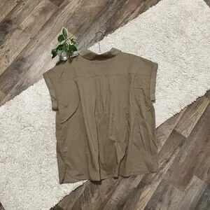 J.Jill Large Petite Brown Cap Sleeve 100% Cotton Pullover Utility Camp Shirt