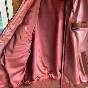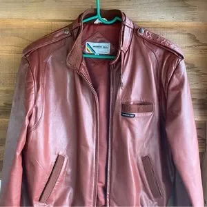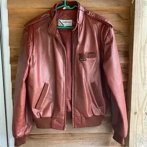 Classic leather jacket. Features ribbed cuffs and hem. Iconic chest pocket with logo.