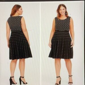 Torrid Polka Dot Knit Sleeveless Fit and Flare Skater Sweater Dress Black White