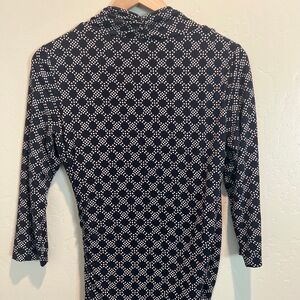 Boden Dress Womens 8L Blue White Wrap Midi 3/4 Sleeve Ruched Flattering Fit