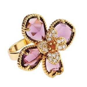 Stunning Retired Park Lane Wisteria Purple Crystal Gold Tone Flower Ring Sz 6