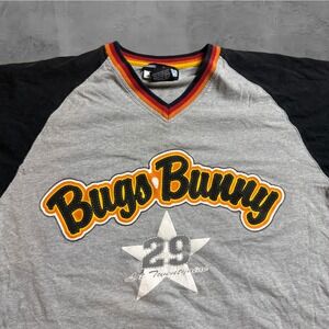 Vintage rare 90s Bugs Bunny 29 Varsity Jersey Style Gray Black Short Sleeve