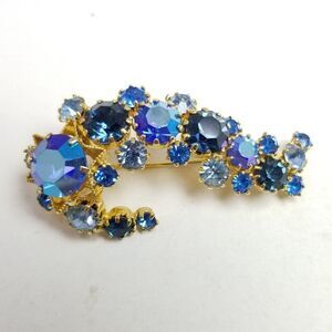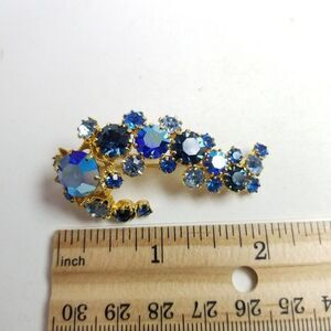 Vintage Blue Rhinestone Cluster Brooch, Made in Austria, Retro 50s Sparkle