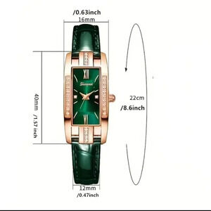 Luxury Women's Square Rose Golden Watch Green Leather Fashion Watch Women's.NWT