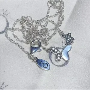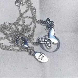 Pandora Silver Heart and Butterfly Necklace