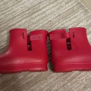 Charming red boots with a glittery bow. Ideal for rain and snow.