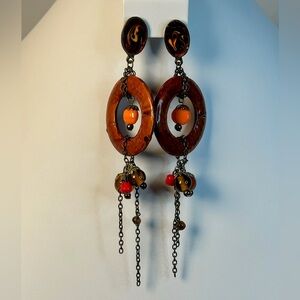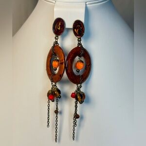 Stylish dangle earrings featuring a unique combination of brown and orange hues. Perfect for adding a pop of color to any outfit. Excellent condition with no flaws. Ship Same/Next Day, Offers Welcome!