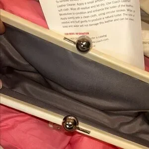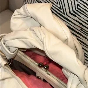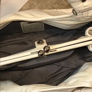 This bag is absolutely beautiful, with soft, plush leather and kisslock in the middle. I bought this bag as a gift and ended up getting another white coach bag. Absolutely clean inside and out.