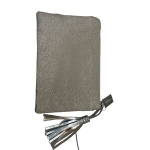 NWT Chico's Clutch Bag Beaded Embroidered Geometric Tassel Zipper Aqua Silver