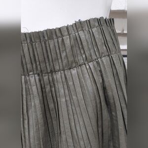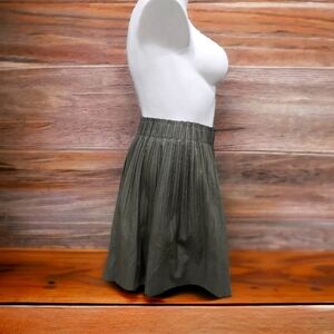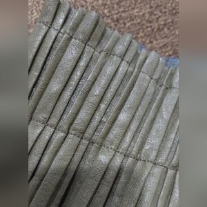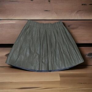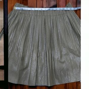 Anthropologie Vegan Leather Pleated Skirt Moss Green Lined Raw Hem Elastic Waist
