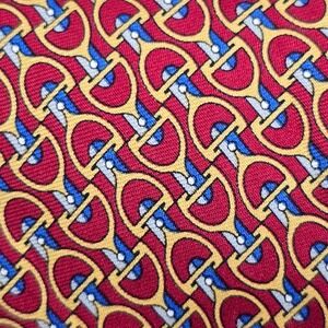 Brooks Brothers Mens Silk Bit Print Tie Red Yellow Preppy Classic Equestrian