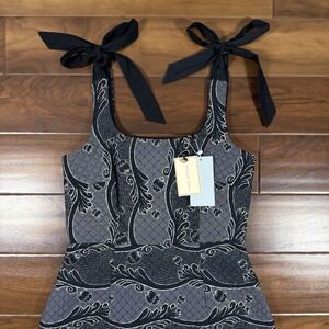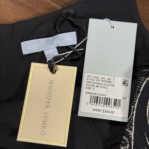 Antonio Melani x Jennifer Sumko Women's Size 4 Black Scroll Schwan Quilted Midi Dress, Shell - 100% Cotton, Lined - 100% Cotton, Filling - 70% Polyester 30% Silicon, No Stretch, Hidden Back Zipper, Adjustable Tie Shoulder Straps, No Pockets, Style # 93775DR0824