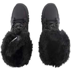 Women’s Black Quilted Faux Fur Cuff Winter Duck Boots Rubber Sole Snow