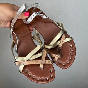 Matt Bernson Jack Designed in New York Metallic Gold Silver Studded Sandals
