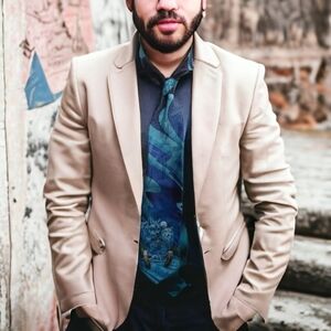 This stunning Bergamo Collection tie features a unique design with dreamcatcher, wolf, night sky, and mystic themes. The blue color brings a touch of elegance to any outfit, while the animal print pattern and accents add a fun and creative touch.