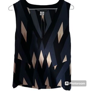 MARC BY MARC JACOBS 100% SILK SLEEVESS TOP BUSINESS WEAR SUMMER BLOUSE NEUTRAL COLOURS NAVY / TAN & CREAM DIAMOND PATTERN SIZE: XS COLOR: NAVUM TAN & CREAM PIT TO PIT: 17.5 ” LENGTH: (Collar rear seam to bottom of hem) - 24” FABRIC:100% SILDK CONDITION: EXCELLENT ( PRE OWNED) 🛍 Bundle Discounts on Multiple Items 📫 Items ship the same day/next day ♻️ Sustainable Business 📦 Carefully Wrapped, Smoke-Free & Pet Free ⭐️ 5-Star Seller
