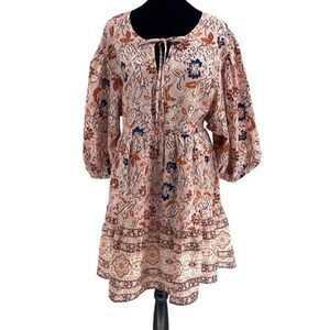 BOG Collective Womens Floral Puff Sleeve Babydoll Mini Dress Multicolor Large