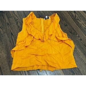 Marissa Webb Ditsy Ruffle Crop Top Sleeveless V-Neck Linen Blend Marigold Size 4