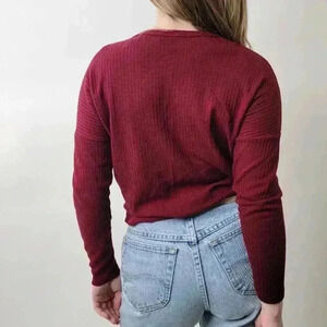 Maroon Burgundy Waffle Knit Crop Top Long Sleeve - XS