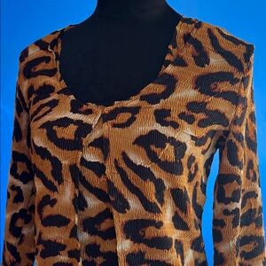 Stylish leopard print top and cardigan set for women. Perfect for a bold, fashionable look