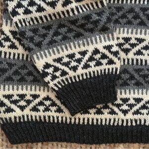 Vintage Black Gray Handmade Norwegian Geometric Wool Cardigan