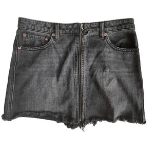 This black denim mini skirt from We The Free by Free People combines urban style and comfort. It features a raw hem and zipper closure and is crafted from durable 100% cotton.