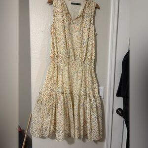 Lauren Ralph Lauren Butter Yellow with Small Floral Print Tiered Midi Sundress