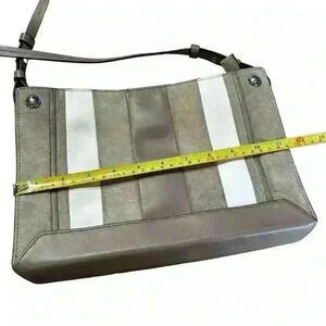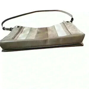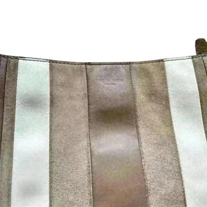 This Rag & Bone Compass Crossbody Bag Purse is a must-have for any fashion-forward woman. Crafted from high-quality leather and suede, this medium-sized bag features a stylish colorblock pattern in beige, white, and tan. The bag has a zip closure and an adjustable strap that can be worn over the shoulder or across the body.
