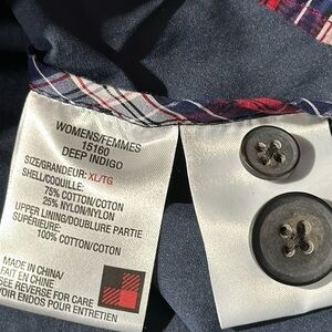 Woolrich women’s navy blue lightweight coat size XL button up (1785)