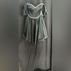 Mac Duggal 20688 Flawed NWT Black Beaded Top Puff Sleeve Dress