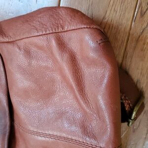 Stylish brown leather backpack with a flap closure. Perfect for everyday use.