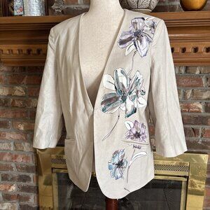 Coldwater Creek Tan Linen Blend Blazer Floral Size 12
