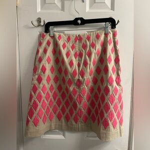 Stunning BODEN British Embroidered Pink Diamonds Tan Skirt w Pockets Skirt 8R
