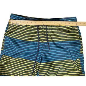Cascade Sport swim board shorts, Men's Sz Med. Blue and Yellow striped.