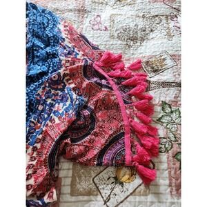 Jodifl Womens Kimono Open Front Cardigan Blue Pink Rayon Tassels Flowy Boho S