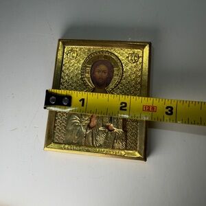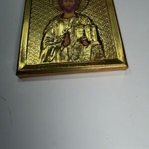 Vintage Printed Icon of Christ Pantocrator with Metal Overlay