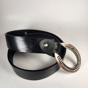 FIRENZE Belt Size 32 Black Leather Made Italy Horseshoe Buckle Rhinestones
