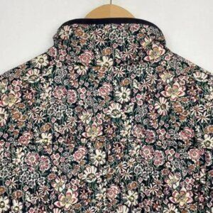 J.Crew x Liberty Quilted Downtown Field Jacket Coat - Multicolor - Black Pink Ivory - Floral Garden Print - 100% Cotton - Hidden zipper + Snap buttons - 4 (+2 side) pockets - Striped lining - Excellent preloved condition - See pictures for details - Size Small