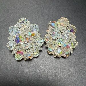 #VintageJewelry, #CostumeJewelry, #RhinestoneEarrings, #ClipOnEarrings, #AuroraBorealis, #MidCenturyFashion, #Glamour