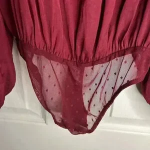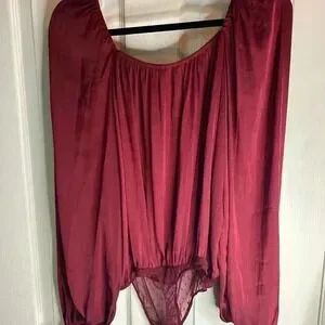 🌟”Free People Intimately” NWT Pomegranate Long Sleeve Thong Bodysuit Size M🌟