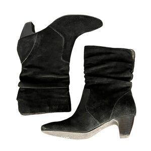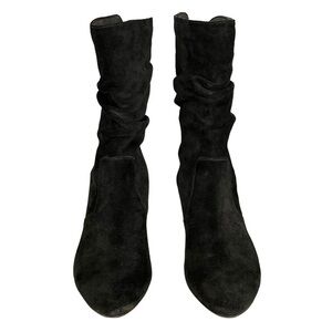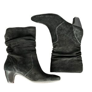 Easy Spirit Black Genuine Suede Leather Stacked Heel Slouch Boots